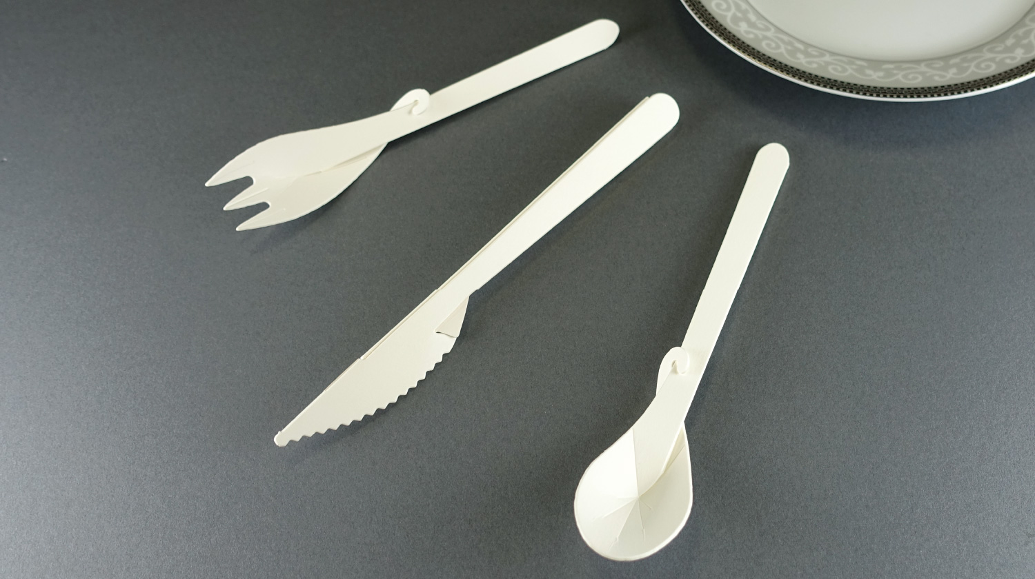 Amu is an environmentally-friendly paper cutlery (spoon & fork) that achieves high strength through its unique 'torsional' shape.